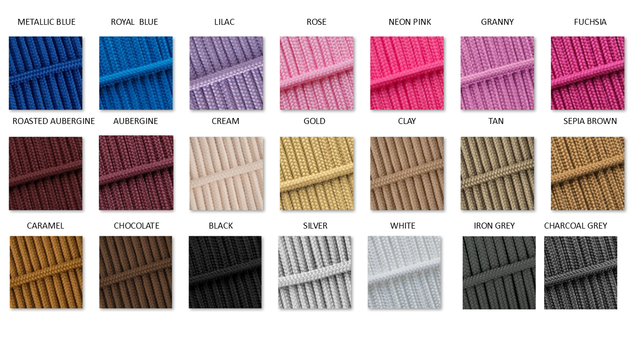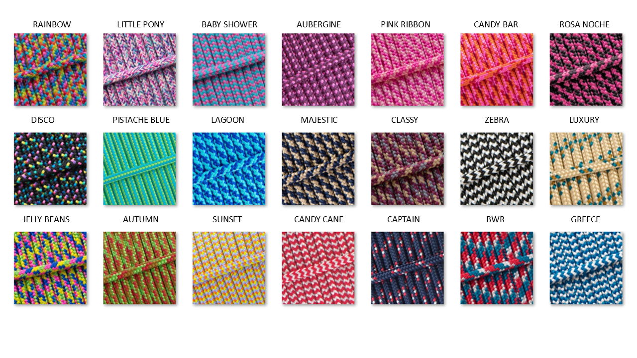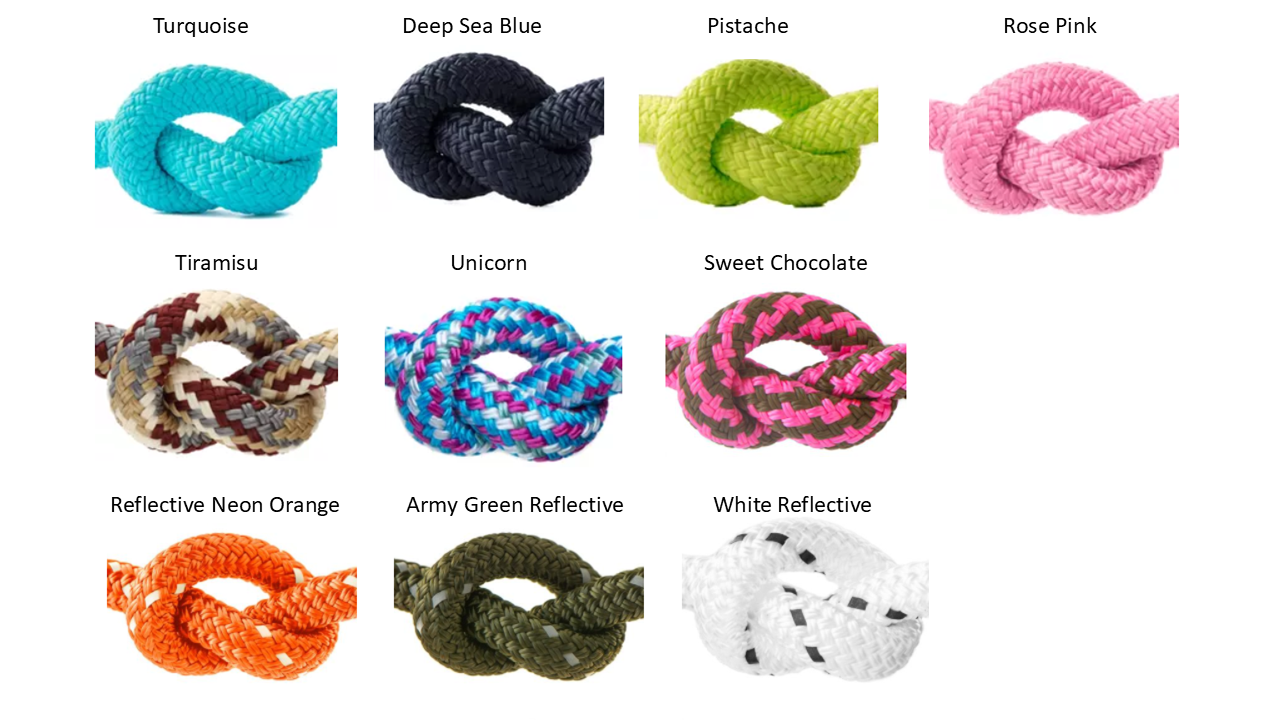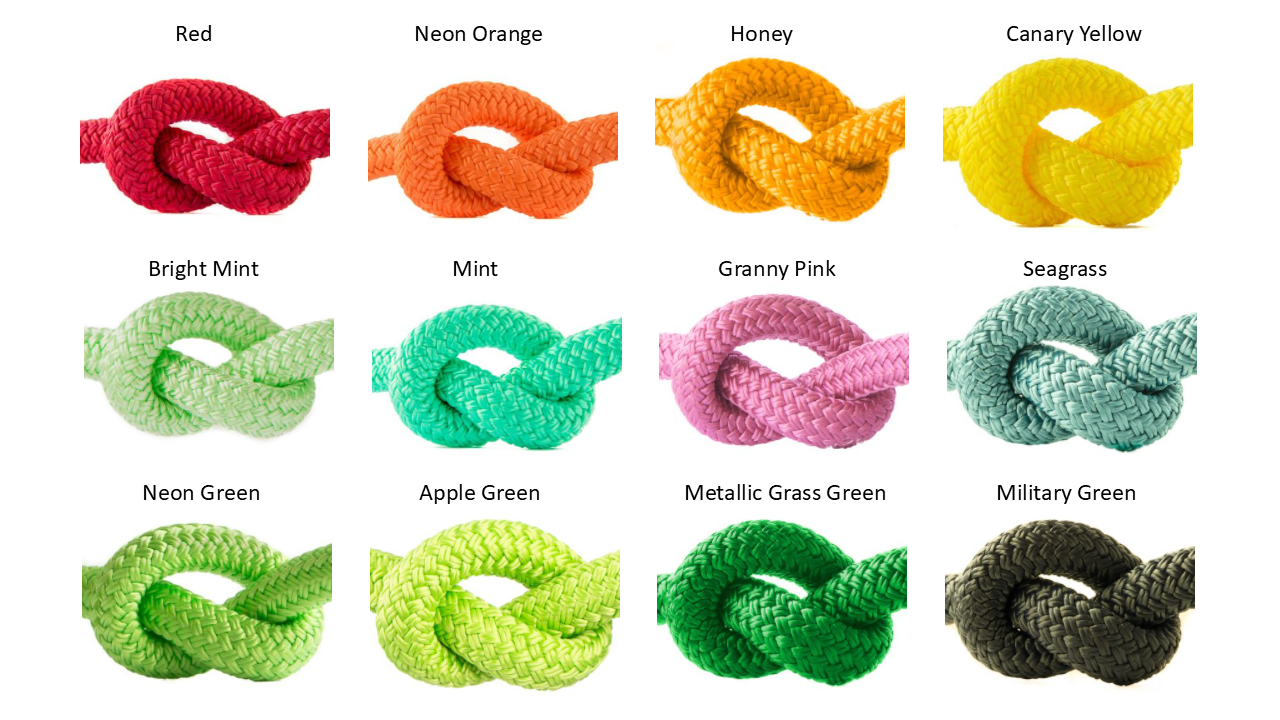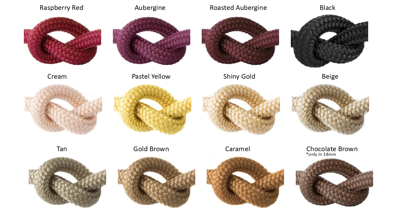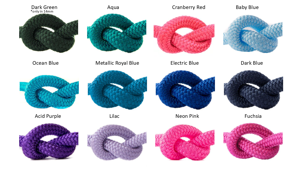 Rope Colours available in 14mm (9/16") and 12mm (1/2") Diameter