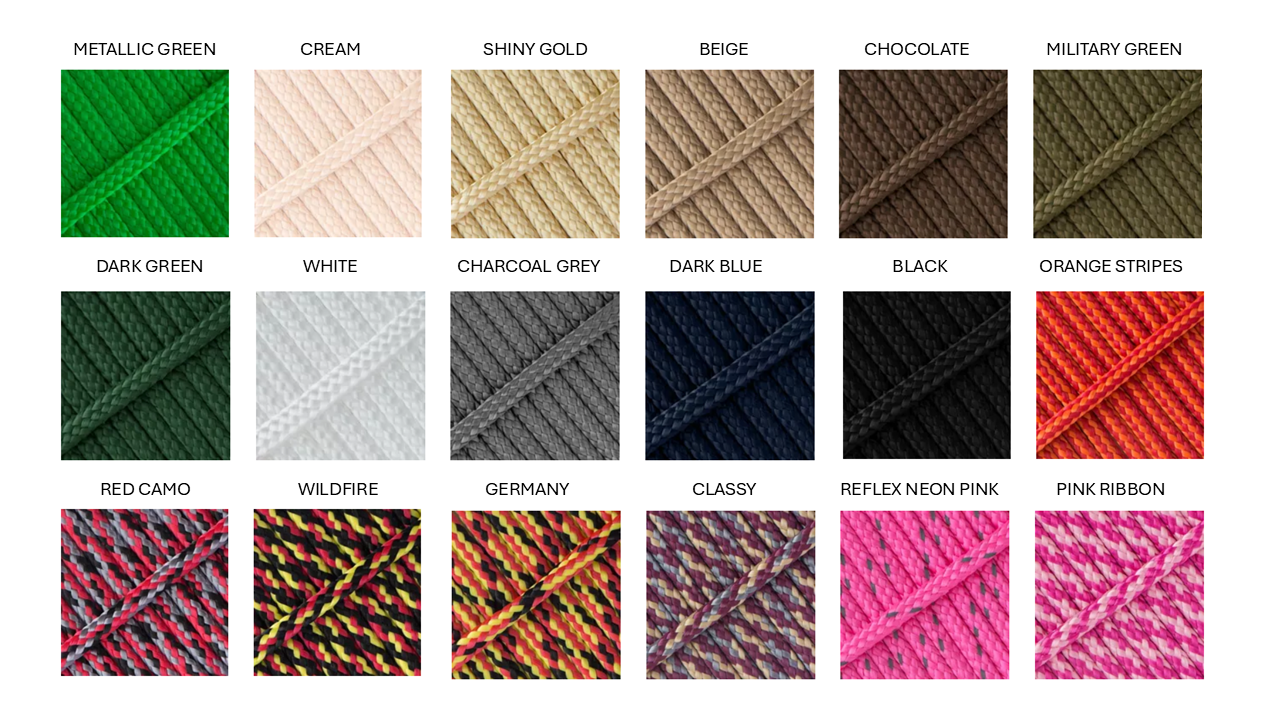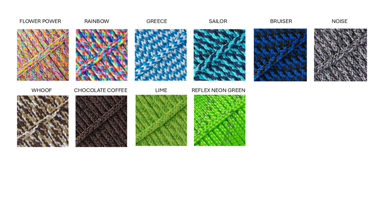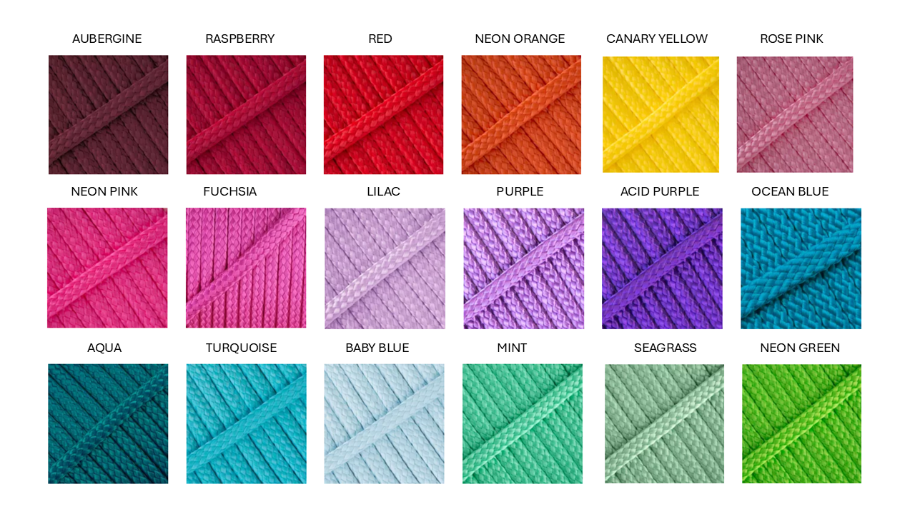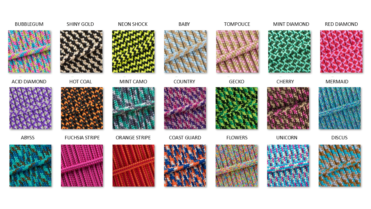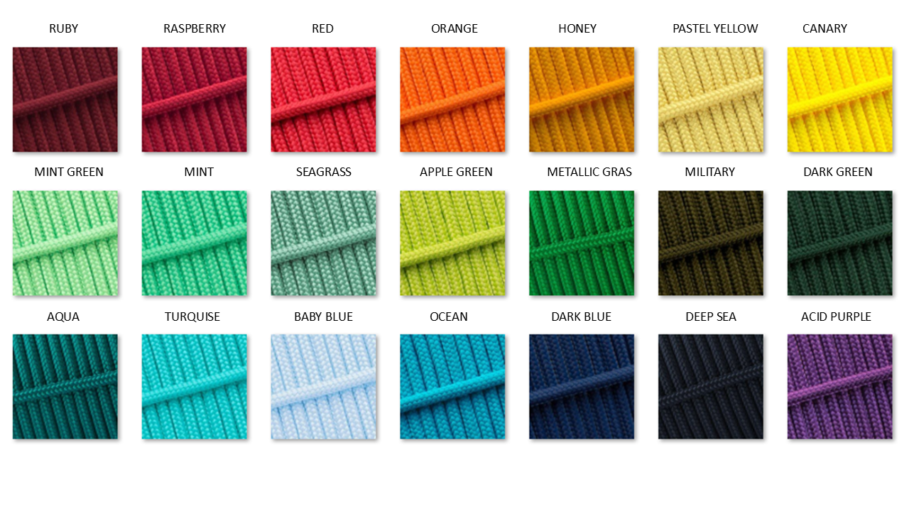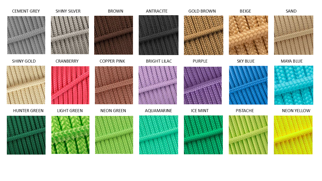 Rope Colours available in 14mm (9/16") and 12mm (1/2") Diameter