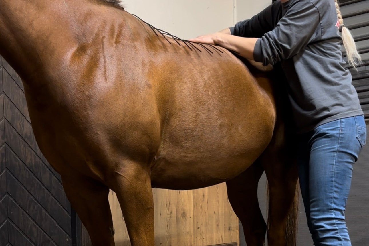 Now I am going to mark all important points on your horses back and than transfer key measurments of your horses back, with the help of a flexible ruler, into a digital file to keep track on your horses history and to keep simply file.