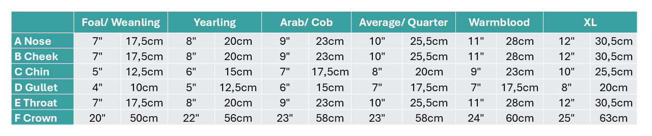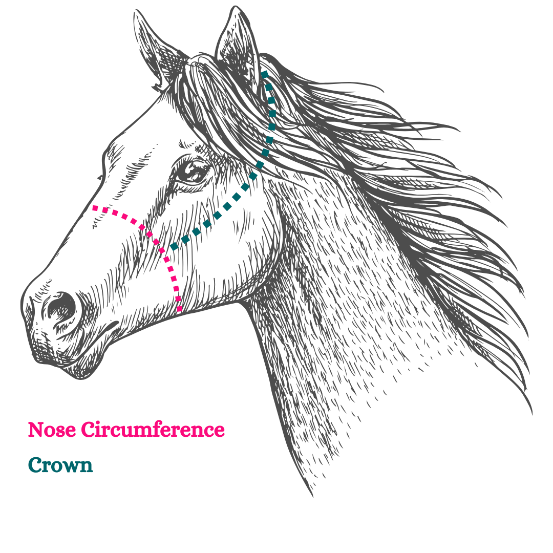 Nose Circumference: measure the circumference of your horses nose two fingers below the cheekbone.