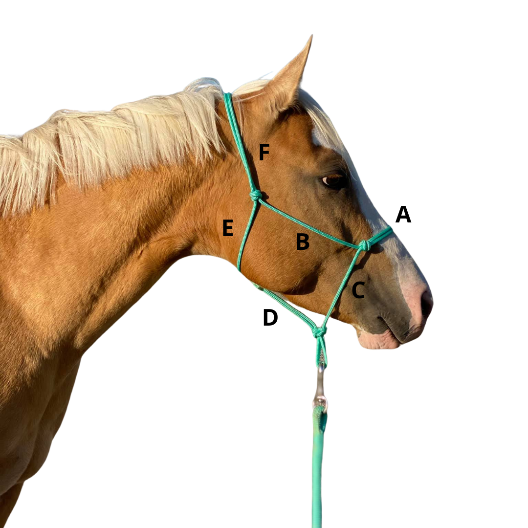 Halters can typically be adjusted once received, and knots will tighten with use.