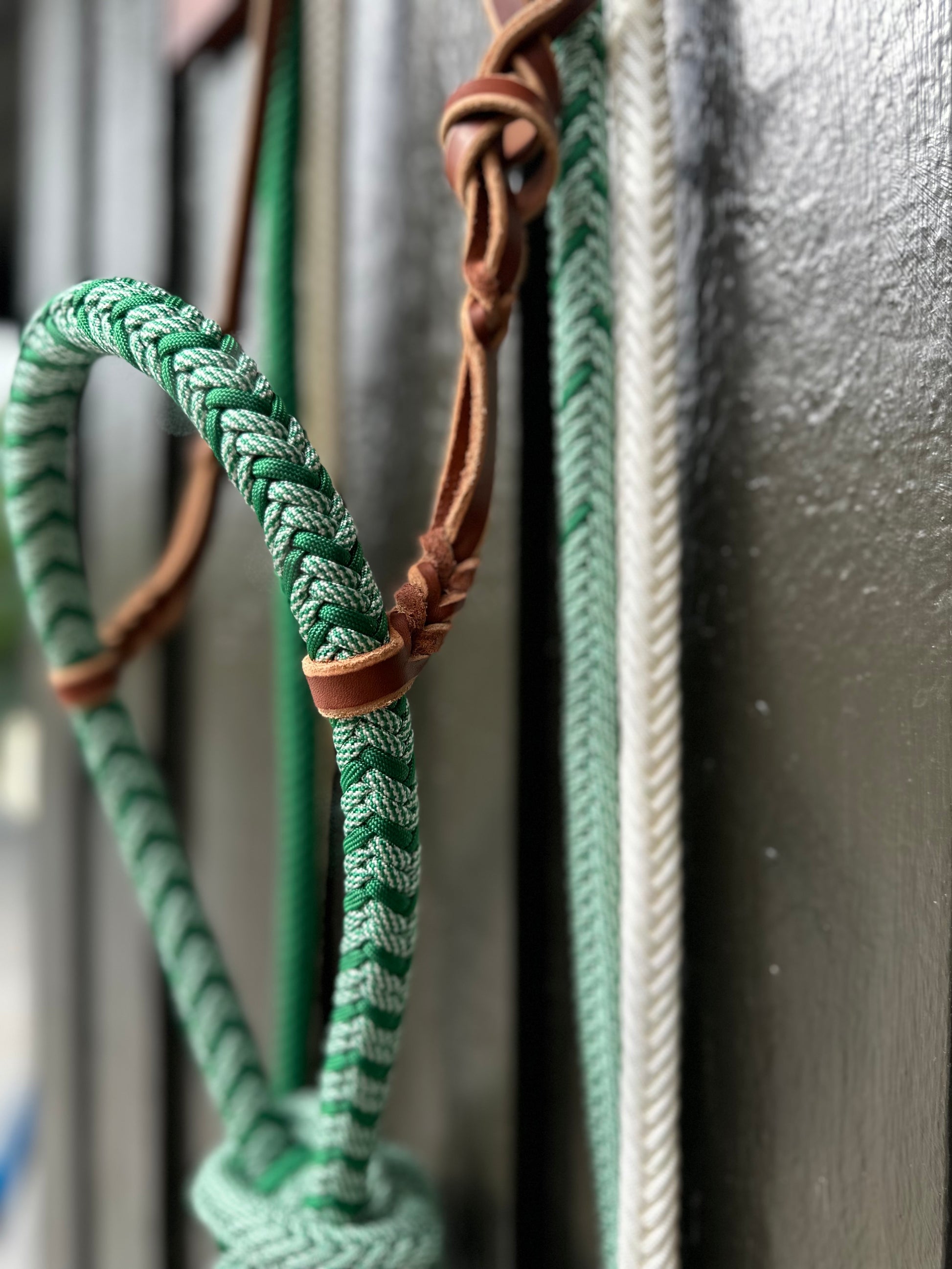 - Stiff Lariat Rope Noseband, fully braided around with Paracord in vibrant colours