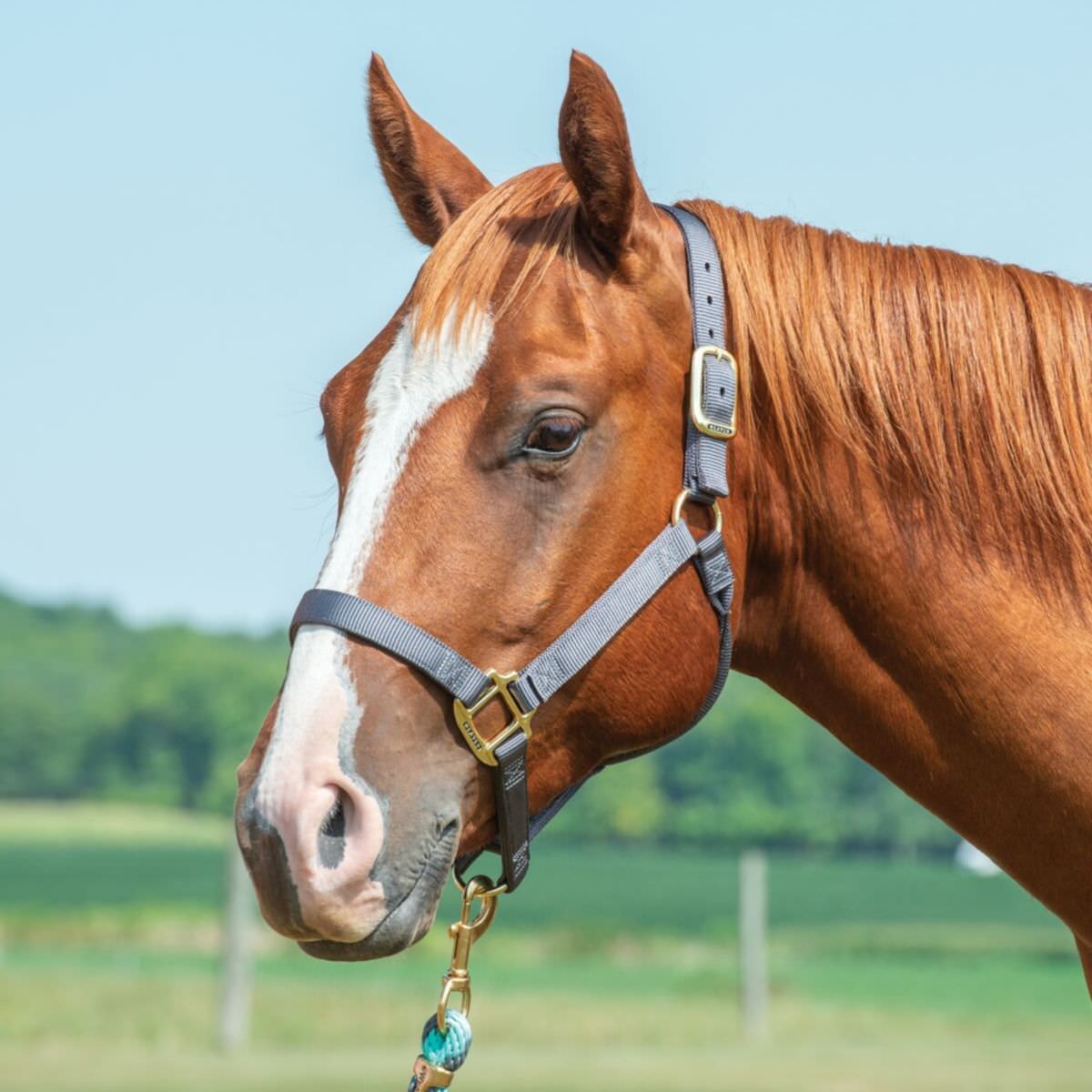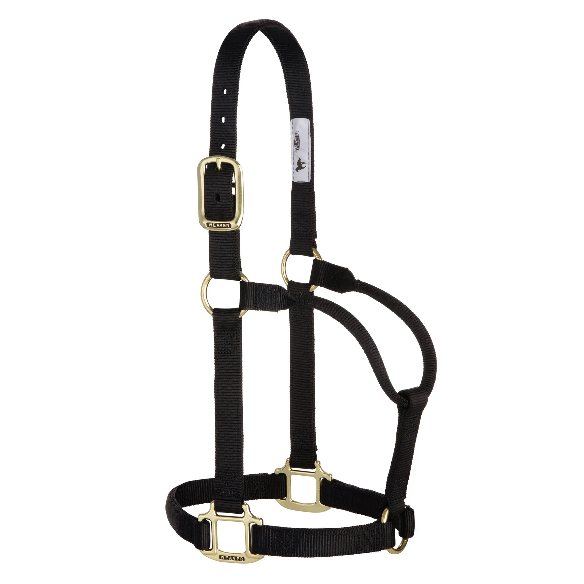 With top quality 1" nylon construction, heat-sealed oblong buckle holes, box-stitching at stress points and true-to-fit-sizing, this will be your go-to halter. This simple, non-adjustable design features a comfortable rolled throat and brass plated hardware.