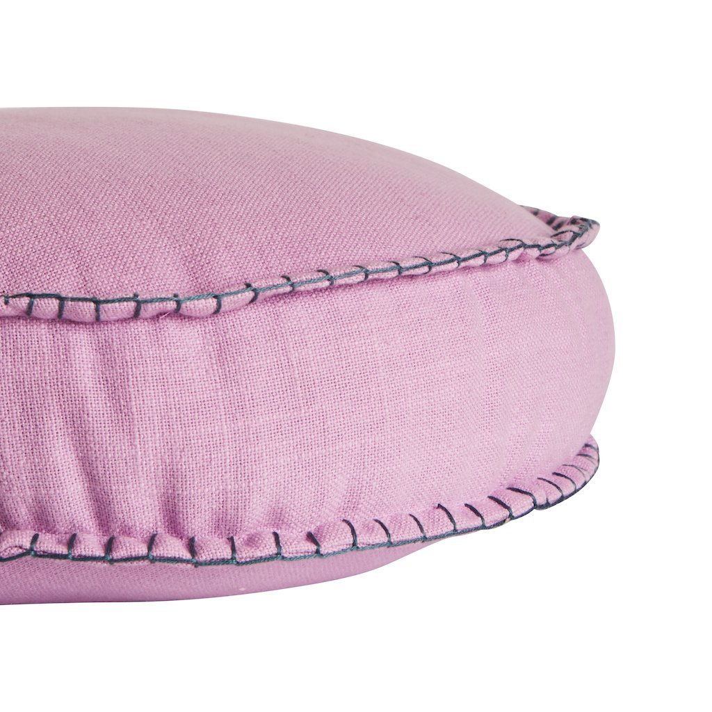 With a multitude of potential uses, this taffy textured cotton cushion is the ultimate roundie. It comes embellished with a contrasting denim embroidered trim while its textural cotton form adds interest . The cushion comes pre-filled.
