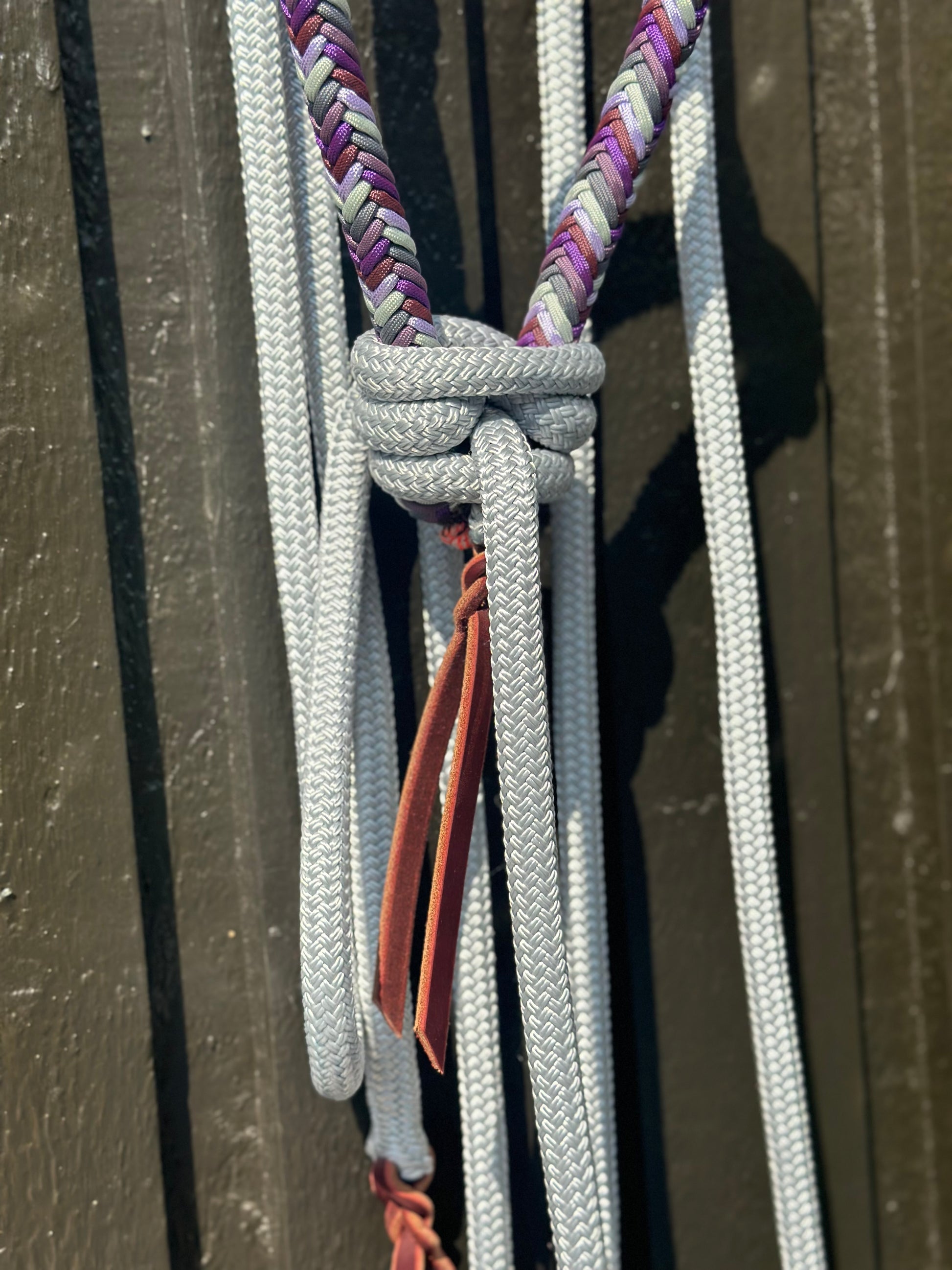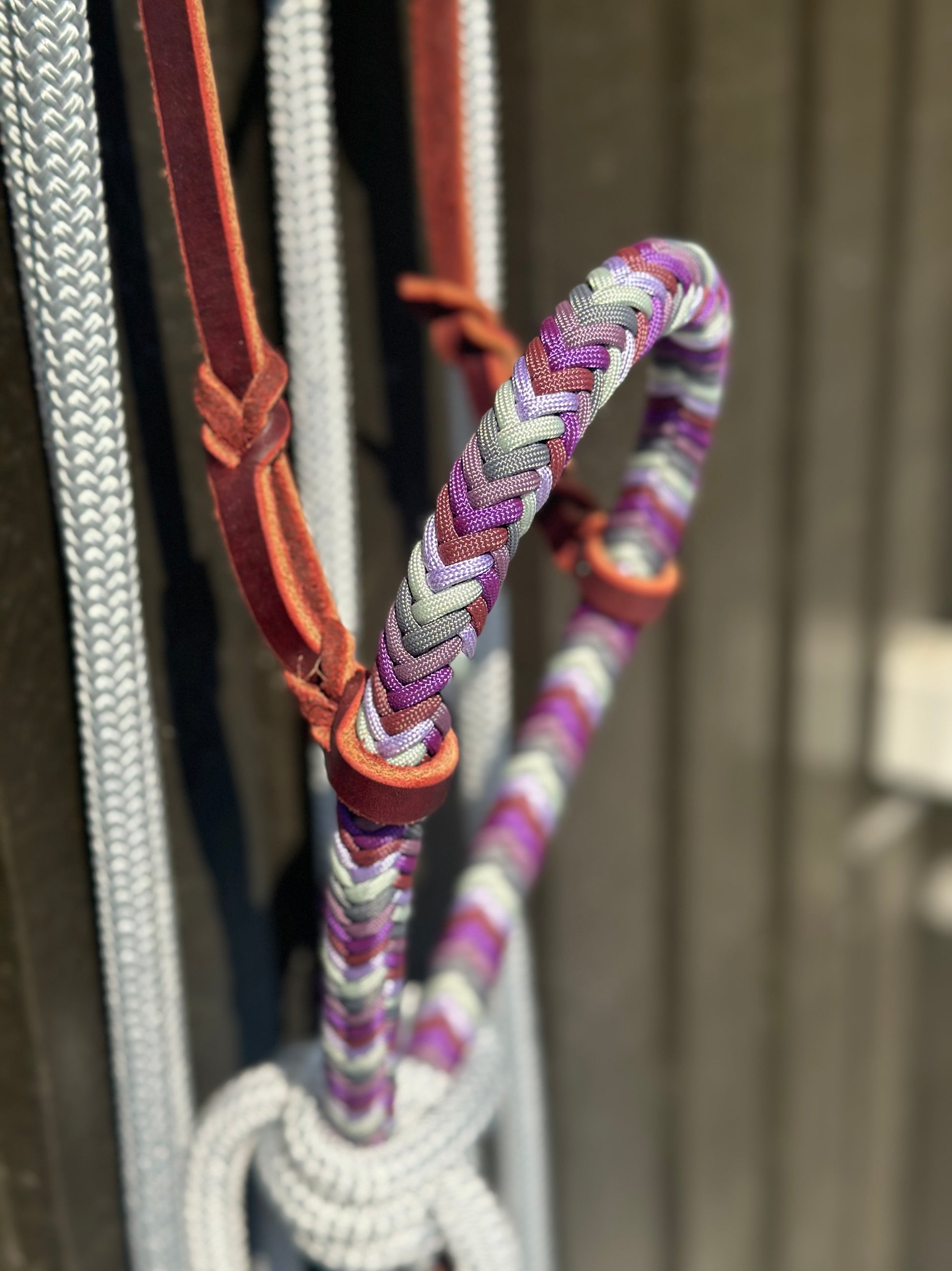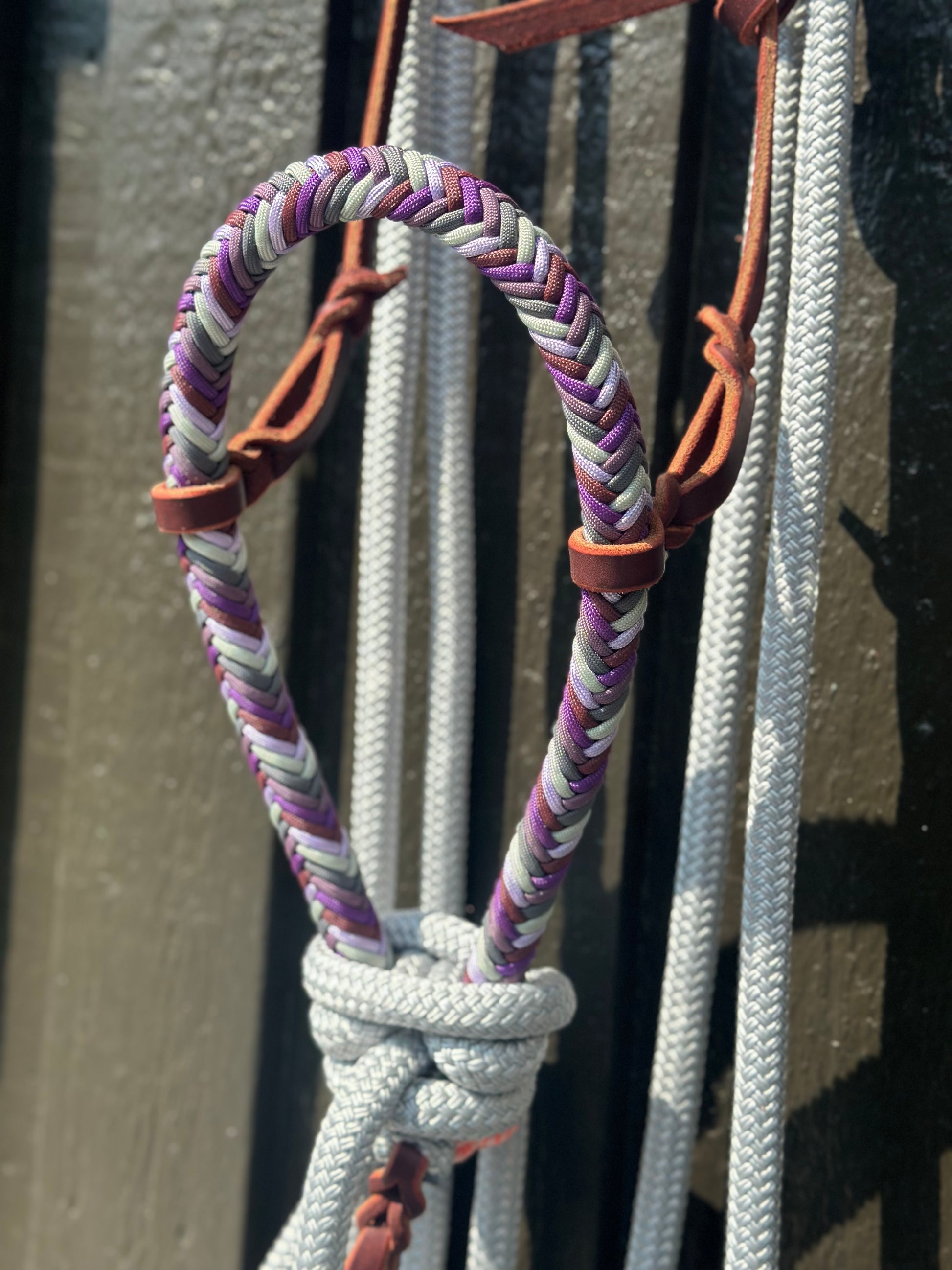 - Stiff Lariat Rope Noseband, fully braided around with Paracord in vibrant colours